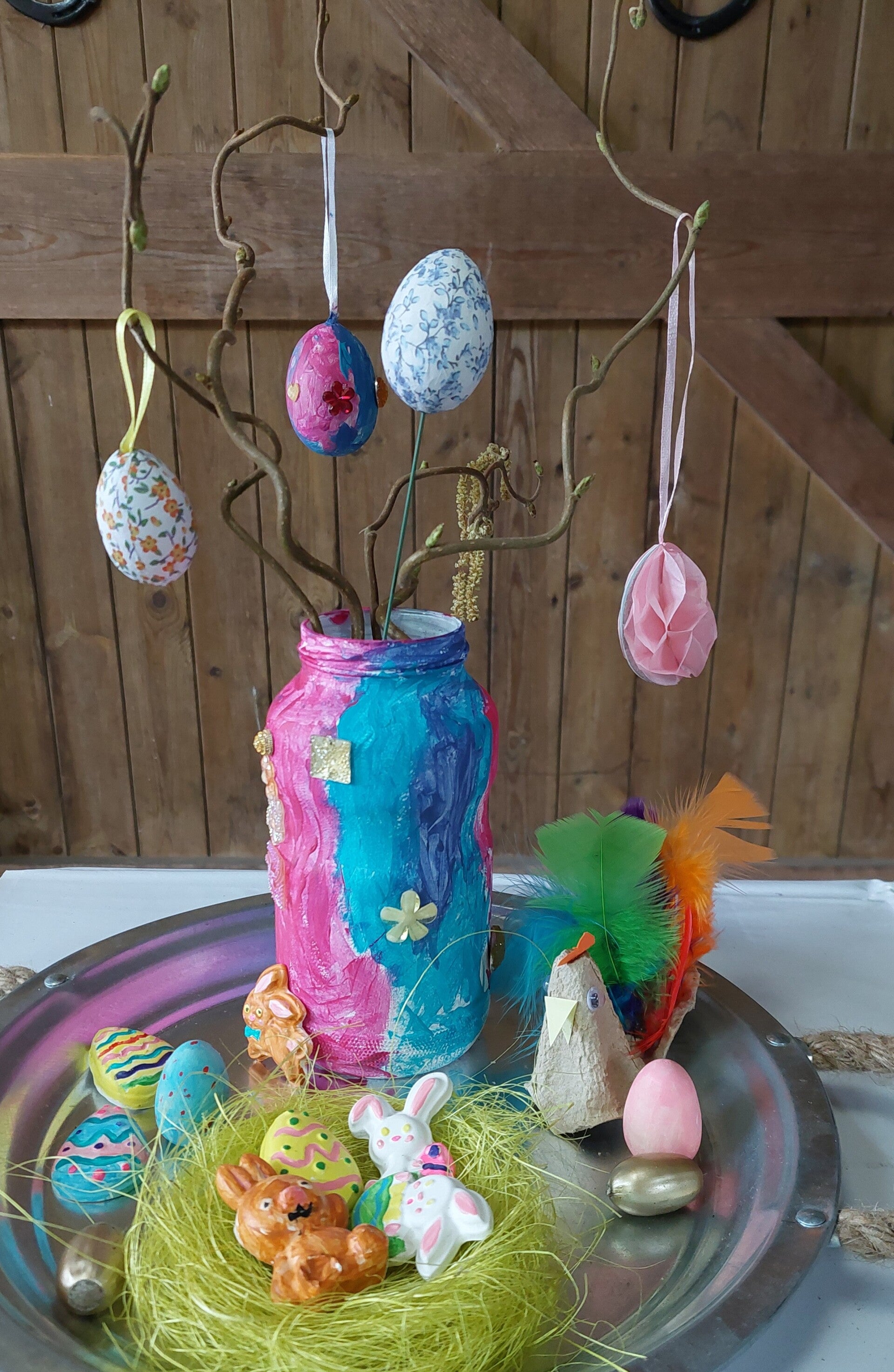 We gaan heerlijk knutselen met spulletjes in het paasthema. Uiteraard mogen jullie ook spelen op het erf, de kippen en eendjes voeren, de konijnen aaien en de pony's borstelen.